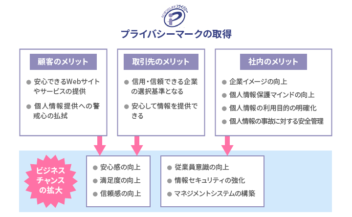 プライバシーマーク制度は、日本工業規格「JIS Q 15001個人情報保護マネジメントシステム―要求事項」に適合して、個人情報について適切な保護措置を講ずる体制を整備している事業者等を認定して、その旨を示すプライバシーマークを付与し、事業活動に関してプライバシーマークの使用を認める制度です。